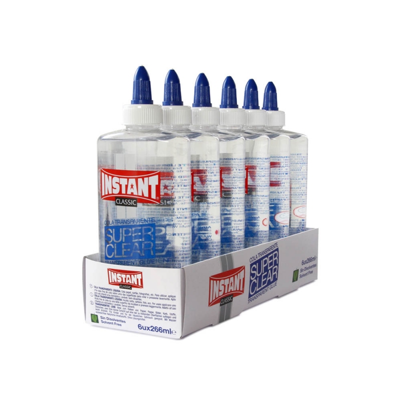 INSTANT. Lot de 6 pcs colles liquide transparente. SUPERCLEAR 266ml. Idéal pour les fans de bricolage, de loisirs créatifs et pour réaliser son propre slime.